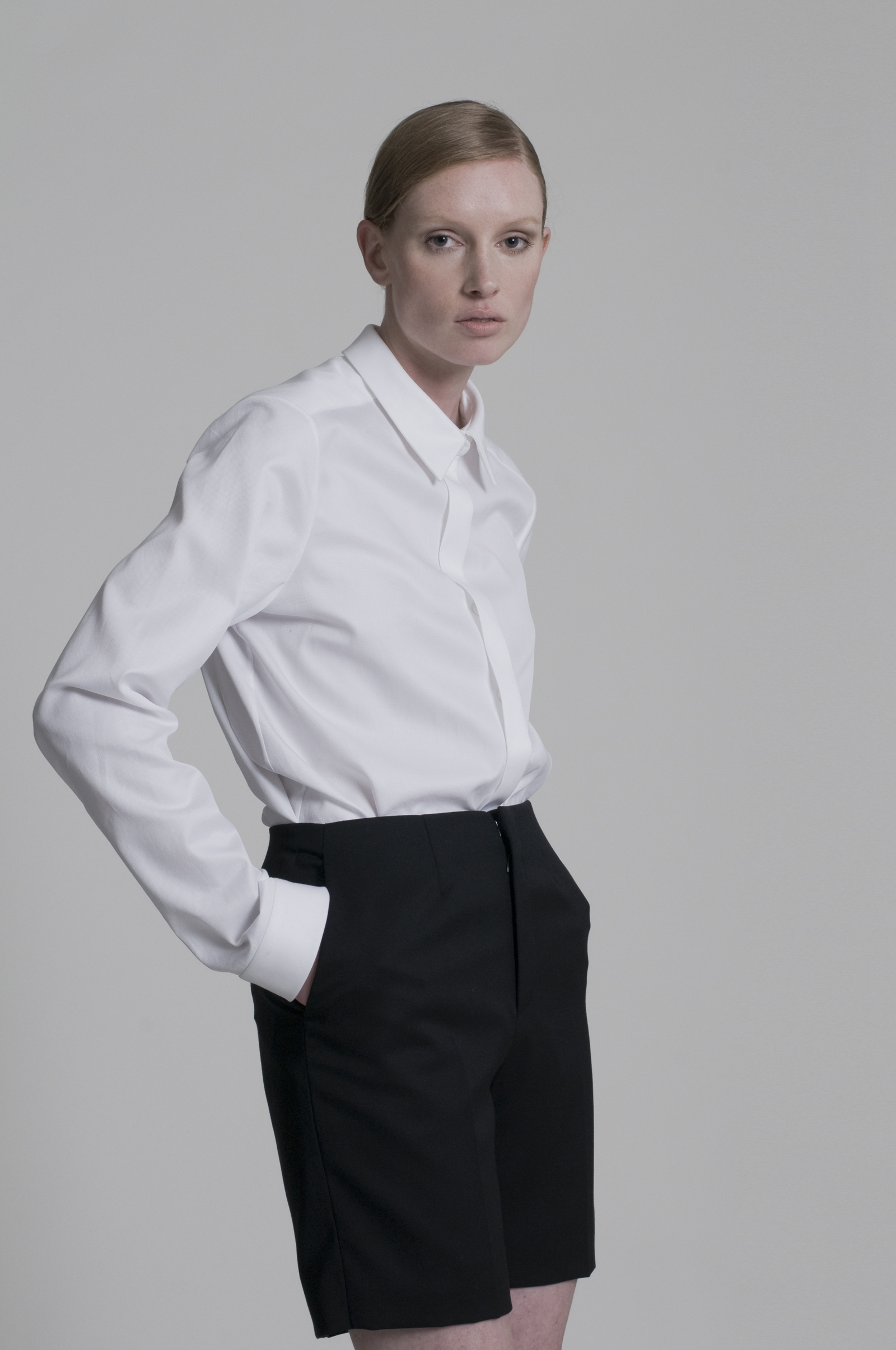 The pure, round silhouette from London-based Tze Goh’s last collection got adopted into a new entity with augmented classical influence of men’s cuts and the aerodynamics of airplanes, all in black, white and beige, punctuating the minimalism as the aesthetic signature of the Singaporean designer. Through Goh’s deft construction skills a streamlined silhouette becomes feminine, and weightless surfaces remain sensitive to the wearers form. Tze Goh definitely remains one to watch.